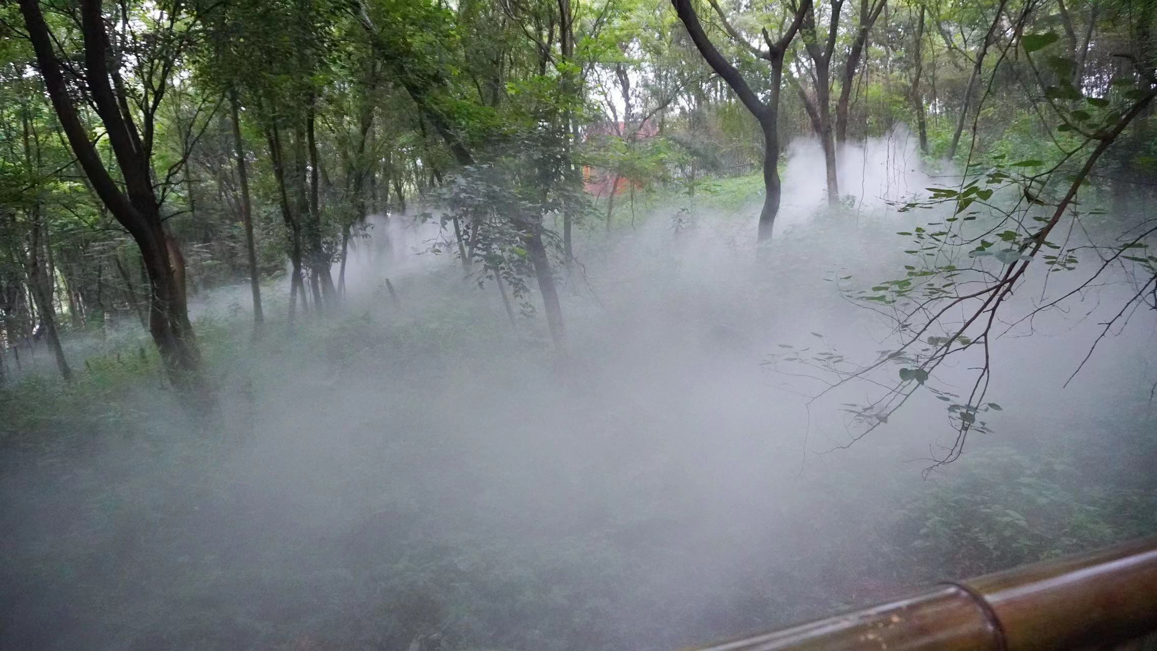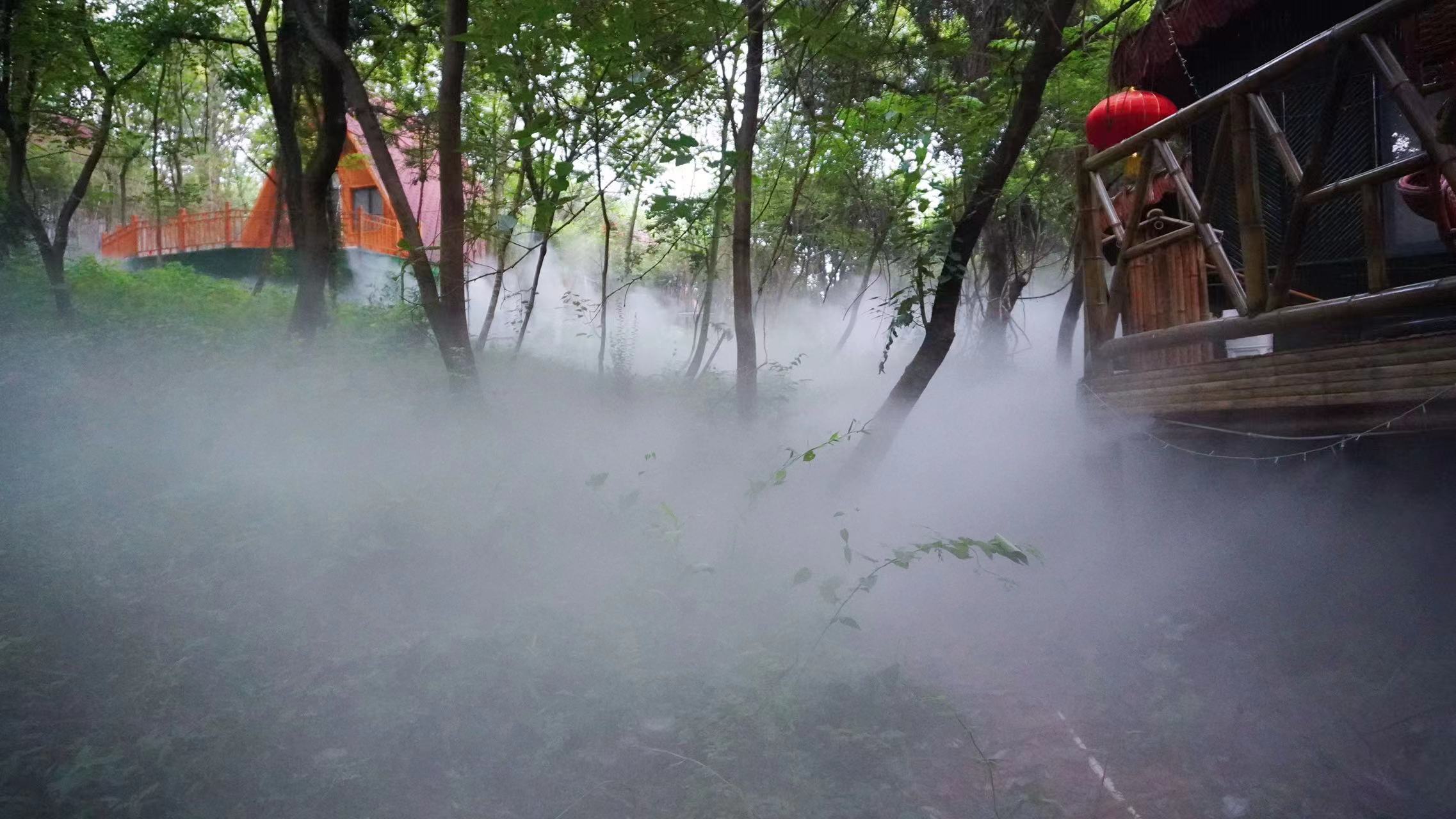 鄂州畔山居民宿景观雾森工程利用高压喷雾技术营造百里生态山水风景。